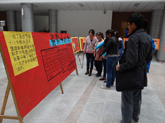本网讯(公共管理学院 供稿)为喜迎党的十八大胜利召开,更好地营造和谐校园环境和氛围,10月8日,公共管理学院学生党支部在教学楼F大厅举行了“喜迎十八大之手抄报展览”活动。 此次活动由公共管理学院团委牵头,学...