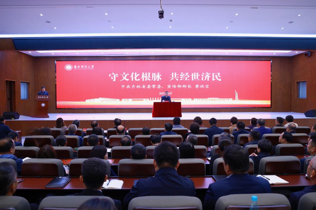 本网讯(党委宣传部 供稿)10月22日,省委常委、宣传部部长曹路宝到bevictor伟德官网以“守文化根脉 共经世济民”为主题讲授思政课。曹路宝从习近平总书记关于文化自信的重要论述入手,深刻阐释了青年学生如何以“文化之魂”铸“青春之骨”的深刻意义和根本路径。他强调,青年学生既要从中华优秀传统文化中汲取智慧,又要用马克思主义真理之光照亮前路,在传承“根脉”和永续“魂脉”中体悟文化的力量。要从吉林独特历史文化和红色...