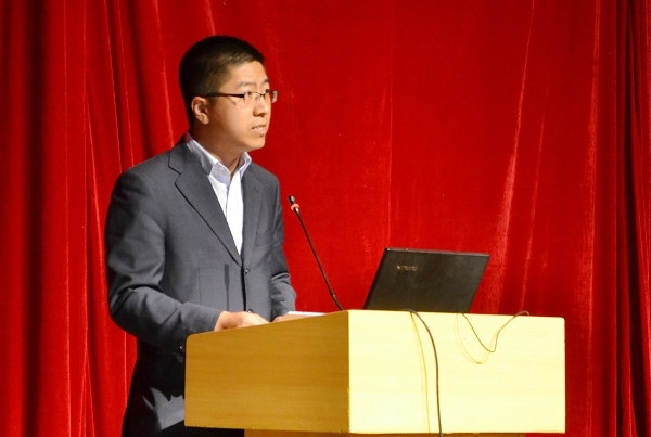 随后,应用数学学院团委书记刘成立老师作了一场题为《红旗渠精神照我前行》的报告,刘成立老师从理想的高度、奋斗的力度、创新的热度、品行的深度四个方面为大家阐述了红旗渠精神。他结合红旗渠典型人物杨贵、吴祖太用青春、热情、鲜血、甚至生命追求理想的感人事迹,呼吁大家勇于追求理想,为理想的实现去努力。并引用胡锦涛同志在西柏坡考察期间的讲话,强调了奋斗的重要性。同时,刘成立老师结合红旗渠修建过程中炸药研发以及伟德创新创业典型金融学院奇信团队、国经学院拓足团队等事例,强调了创新的重要性。