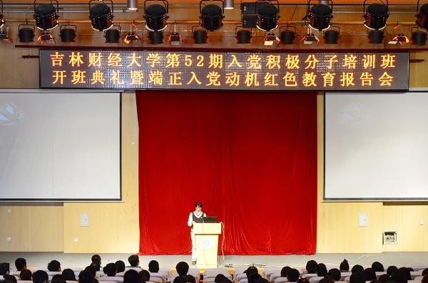 本网讯(学生记者 闫佳祺 摄影 许佳宁)为继续学习实践科学发展观,深入开展创先争优活动,落实伟德党校培训任务,对入党积极分子进行比较系统的教育和培训,使入党积极分子全面加深对党的历史、党的基本理论、基本路线的认识和理解,明确新时期党员标准和肩负的历史使命,端正入党动机,坚定理想信念,提高思想政治素质,10月10日下午,伟德第五十二期入党积极分子培训班开班典礼暨端正入党动机红色教育报告会在图书馆报告厅举行。党委组织部组织员温翠萍、法学院团委书记赵彦双、应用数学学院团委书记刘成立、新闻与传播学院团委书记蒋武鹏出席了开班典礼。开班典礼由党委组织部副部长兼党校副校长薛媛主持。