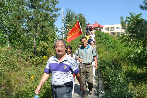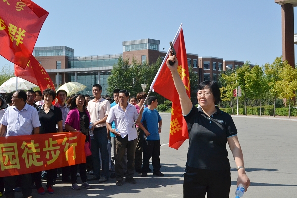 在这次徒步行活动中,教职工从图书馆前中心广场东侧出发,沿着一教前明河的东侧行走,一直走到东门,再沿着东门的道路走到隅山亭,又从隅山亭走到崇山,经过学校“小天池”后绕到15栋学生公寓,再到桃李林,最好到达了终点站大学生活动中心。