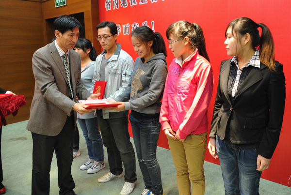 本网讯(记者 郭建辉)9月29日,伟德举行了第四届吉财“菁华”助学基金发放仪式,伟德78级杰出校友、吉财“菁华”助学基金会理事长 青岛海尔集团原副总裁崔少华先生为获得资助的15名学生发放了助学金。参加发放仪式的还有学工处处长兼学生资助管理中心主任袁贵成、学工处副处长李栋栋、第一届和第二届吉财“菁华”助学基金获得者张爽以及本届吉财“菁华”助学基金获奖学生、前三届获奖学生代表。