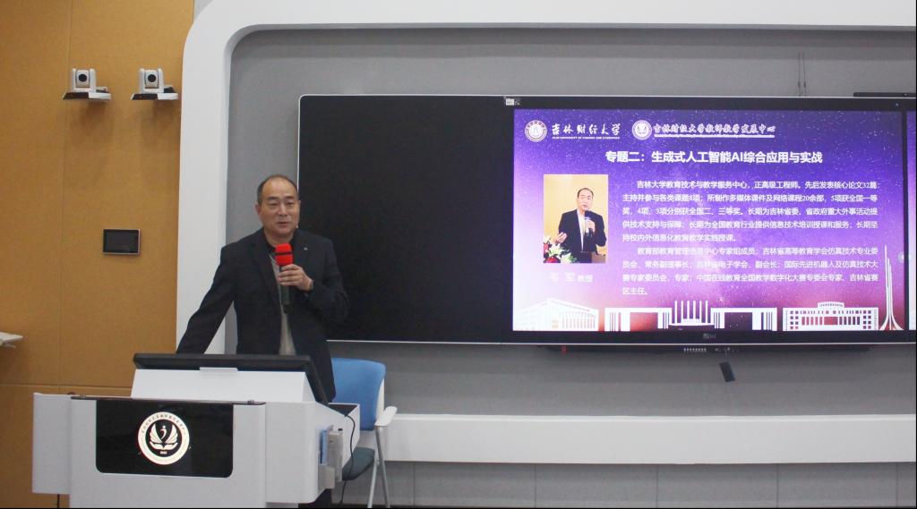 10月16日下午,吉林大学教育技术与教学服务中心正高级工程师韦军教授聚焦“生成式人工智能AI综合应用与实战”主题,从“AI工具选型策略”“借助AI工具制作高阶PPT”等实战维度,对人工智能工具的综合应用进行了解读。韦教授指出,生成式AI的核心价值在于“人机协同提升效率”,建议教师逐步建立技术应用自信,最终达成“快乐教学、高效学习”的目标。