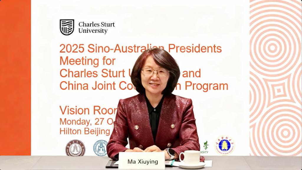 本网讯(国际教育学院 国际合作与交流处 供稿)10月27日,2025年中澳合作办学校长年会在北京召开,校长马秀颖教授应邀出席会议并作交流发言。澳大利亚驻华大使馆副大使James Fisher,教育和研究处公使衔参赞Alison Dell应邀参会,会议由澳大利亚查尔斯特大学校长Renée Leon教授主持。