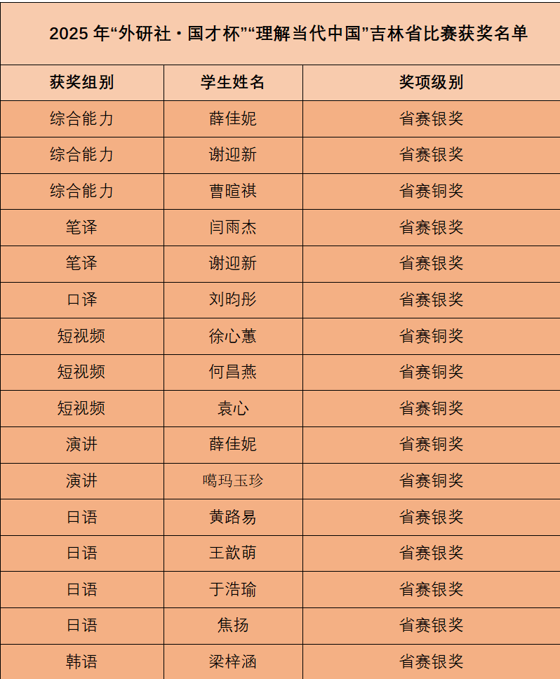 本网讯(语言文化学院 供稿)11月2日,“外研社・国才杯”“理解当代中国”外语能力系列大赛吉林省总决赛落下帷幕,伟德学子凭借扎实的语言功底、深刻的思辨能力与鲜活的创新表达,在英语组、多语种组两大类别多个赛项中表现出色,共斩获12项银奖、10项铜奖。