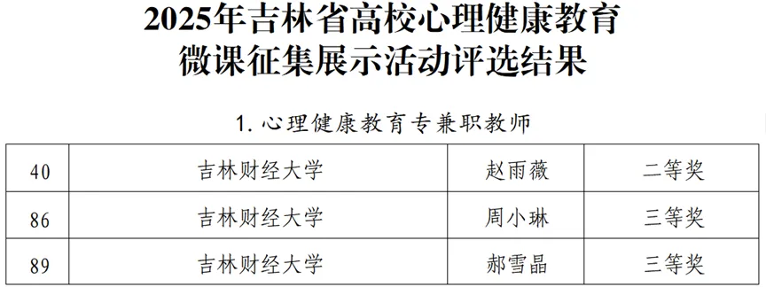 本网讯(党委学生工作部 供稿)近日,吉林省教育厅公布2025年吉林省高校心理健康教育“精彩一课”教学展示活动及微课征集展示活动评选结果。伟德6名教师斩获“精彩一课”教学奖项2项、微课征集奖项6项。