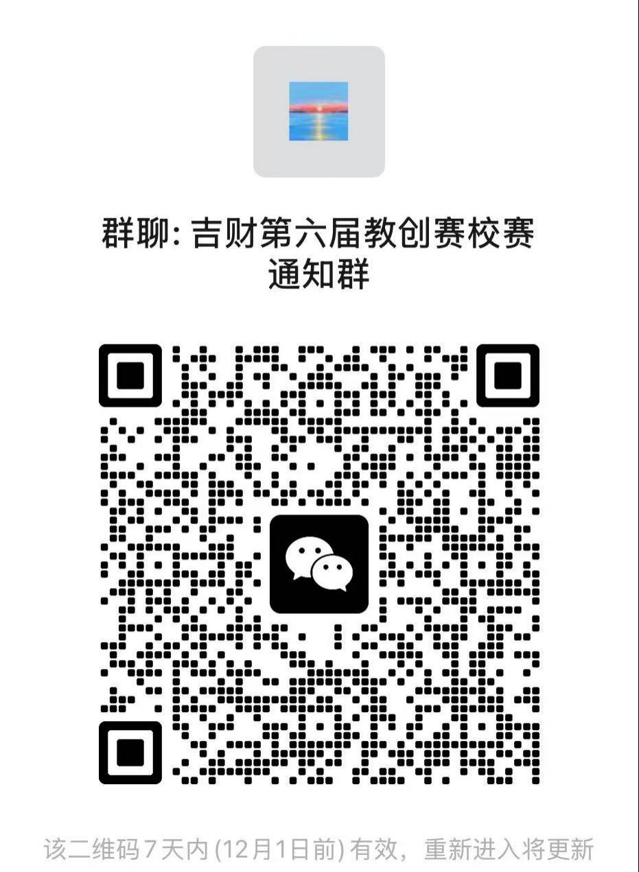 2.请参赛教师及所在单位分管教学副院长(院长)于三日内扫码加入本届校赛通知微信群,后续相关赛事要求、培训通知等将于群内发布。