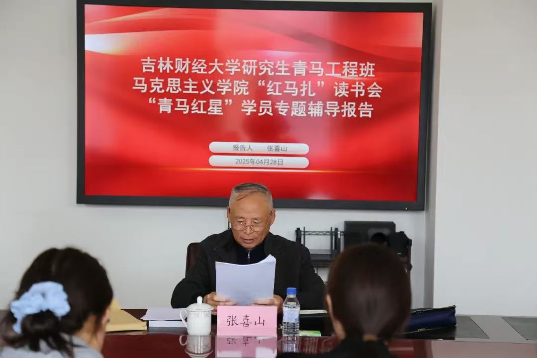 本网讯(马克思主义学院 供稿)4月28日,马克思主义学院举办研究生青马工程班暨“红马扎”读书会“青马红星”学员专题辅导学习,学校关工委主任张喜山作“为人民服务”专题辅导报告。2024级研究生青马工程班学员参加了辅导学习,报告由辅导员于友丞主持。
