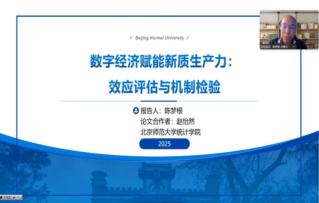 本网讯(统计学院 供稿)5月8日,统计学院特邀北京师范大学统计学院陈梦根教授作题为“数字经济赋能新质生产力:效应评估与机制检验”的线上报告。