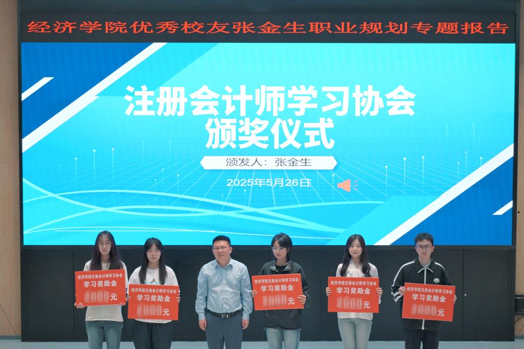 会上,张金生为学院注册会计师学习协会优秀学生代表颁发了奖励金,并激励更多学子奋勇前行,保持对学习的热爱,深耕专业领域,追求卓越。获奖学生代表王钰淇、代桐瑶分享了各自学习心得。