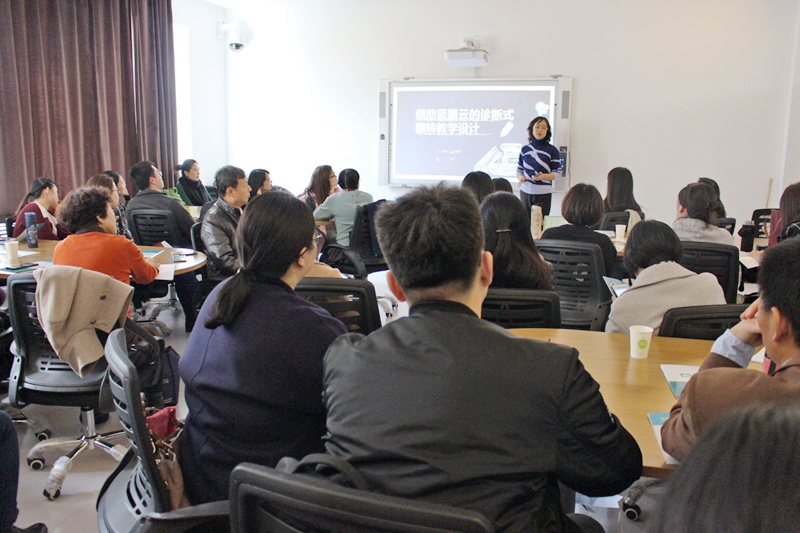 她首先用蓝墨云班课的“投票问卷”功能提出两个问题让大家回答:您使用云班课辅助教学吗?您在授课的过程中最头疼的事是什么呢?与会老师马上把注意力集中到问题上,纷纷快速作答。通过第一个问题,她了解到了老师们对“蓝墨云班课”的了解和运用情况。通过第二个问题,她汇总、分析了当前课堂教学存在的主要问题及其产生根源,进而提出了全面解决方案。她认为在教学中,应该变结果考核为过程考核,老师应该掌握“三备原则”:备好教学内容、备好教学方法、备好学生(诊断),进行以诊断为前提的课堂翻转。在现场,李舸老师展示了“蓝墨云班课”的签到、资源利用、投票问卷、头脑风暴、答疑讨论、作业与小组任务、测试等功能,并让各位参会老师以学生身份进行体验和互动。她认为借助“蓝墨云班课”,提高了课堂出勤率,加强了过程考核,提升了学生参与度,让课堂真正互动起来,实现了翻转教学。不仅如此,教师和学生的教学行为都通过云平台记录下来,有据可查,并可以此数据来调整和改进教和学。
