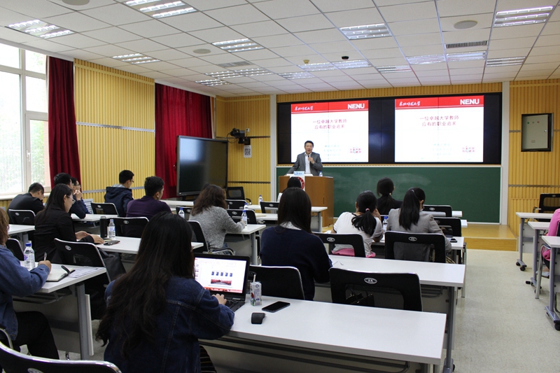 柳海民教授思路敏捷,出口成章,彰显着他深厚的底蕴和修养。与时俱进的教育理念,清晰独到的阐释解读,教学名师的职业感悟,令各位新教师深受启发,获益良多,赢得了教师们的热烈掌声。(审核人 陈月霞)