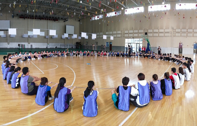活动的最后一个项目是“生命动力圈”,一根普通的绳子,它承载了生命也充满了动力,而动力是所有的同学一起赋予它的。同学们围成一圈共同摇动这一根绳子,“2017级,2017圈”,齐心协力,众志成城,这也让同学们意识到:这并不是一个关于竞争的比赛,而是一个关于坚持、关于团结、力众一心的挑战。