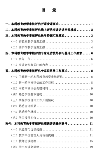 为高质量迎接审核评估期间专家的线上评估和线下评估工作,评建办针对“审核评估听课看课要求”“线上评估座谈访谈回答模板”“评估专家走访校外实习基地有关要求”“评估专家联络员工作要求”“评估座谈访谈提纲参考”五个方面,编撰完成学习手册,供全校师生参考借鉴。