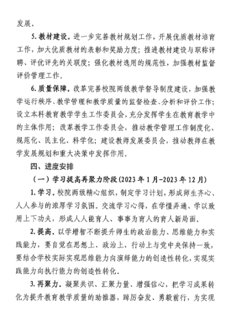 本科教育教学改革暨《“育人立校”战略工程集中建设阶段工作方案》