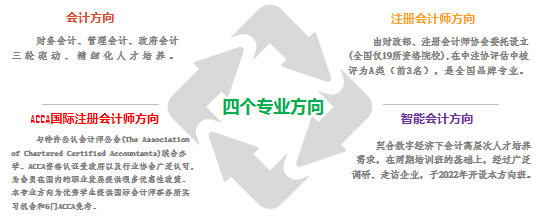 会计学(智能会计):本专业方向培养德智体美劳全面发展,满足大数据高速发展背景下经济社会发展对会计数据分析和会计管理决策的需求,具备会计数据分析能力的智慧型、创新型的应用复合型人才,学生可胜任大中型企业、行政事业等单位的会计分析工作,能够运用智能化工具发挥会计的规划、决策、控制、评价职能,更好地为管理决策者提供辅助决策的会计信息。