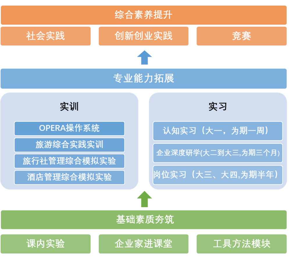 bevictor伟德官网旅游管理专业以“旅游+数智+冰雪”为特色,以“企业+学校+政府”协同育人机制为依托,构建“专业技能+数智素养+创新能力”多元人才培养模式,注重“数字+旅游”、“冰雪+旅游”的深度融合,坚守“知能并重,德智双优”的专业培养目标,培养财经背景深厚的复合应用型旅游管理人才。