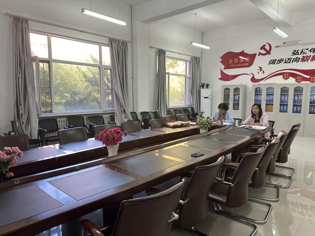 上午9点30分关晓丽和周晓梅对公共外语教研部赵书博副主任进行了座谈,主要围绕公共外语教研部的教学评估准备工作进行了详细了解和讨论。