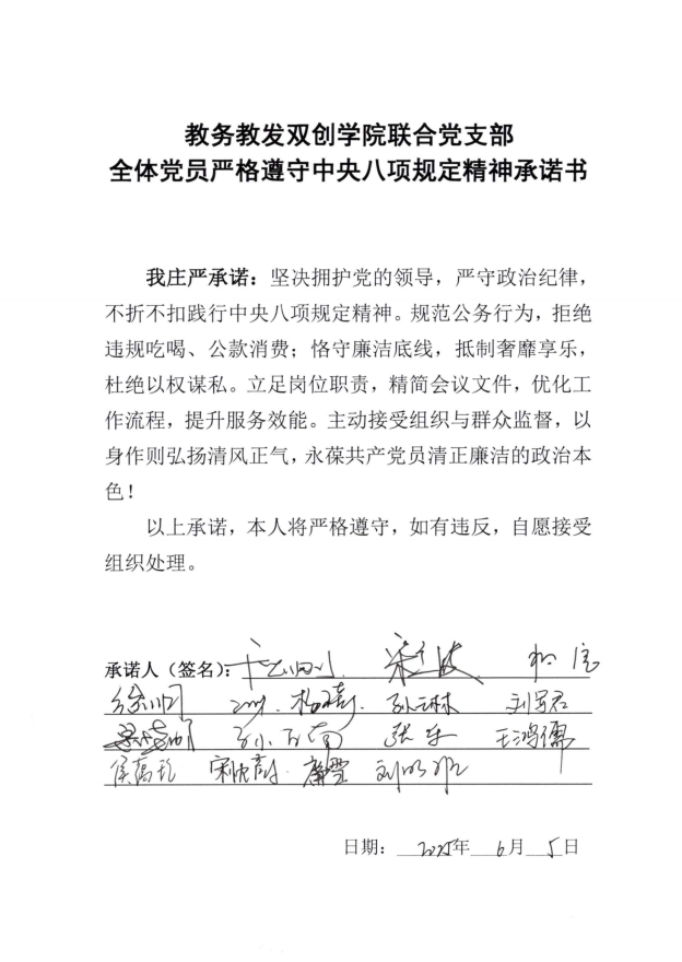 会议最后,支部组织党员签订《严格遵守中央八项规定精神承诺书》,从严守政治纪律、杜绝违规吃喝、提升服务效能等方面作出庄严承诺。